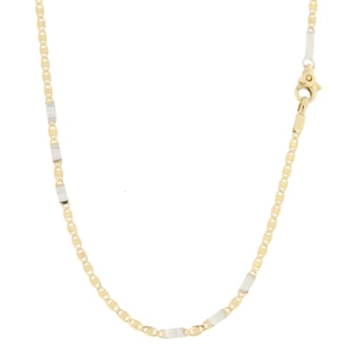 Collana Uomo Oro Giallo Bianco GL100384 Collana da uomo in oro giallo e bianco 750/00 (18 kt). La maglia della collana è a catena piena con lavorazione lucida. La lunghezza della collana è di 50 cm. La larghezza della maglia è di 0,30 cm. La chiusura della collana è con moschettone. Il peso della collana è di 4,00 grammi. Referenza: GL100384