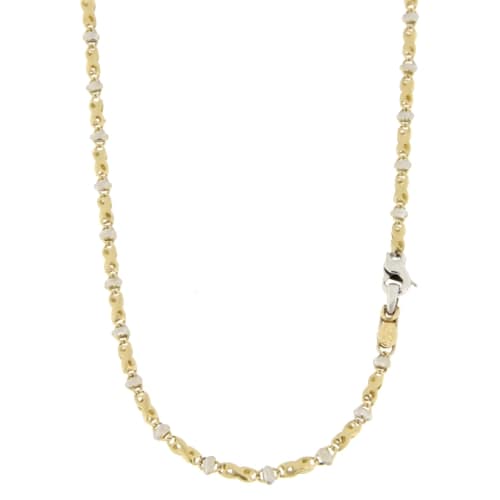 Collana Uomo Oro Giallo Bianco GL100394 Collana da uomo in oro giallo e bianco 750/00 (18 kt). La maglia della collana è a catena piena. La lunghezza della collana è di 50 cm. La larghezza della maglia è di 0,40 cm. La chiusura della collana è con moschettone. Il peso della collana è di 13,30 grammi. Referenza: GL100394