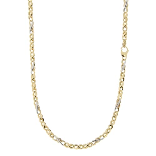 Collana Uomo Oro Giallo Bianco GL100625 Collana da uomo in oro giallo e bianco 750/00 (18 kt). La maglia della collana è a catena. La lunghezza della collana è di 50 cm. La larghezza della maglia è di 0.30 cm. La chiusura della collana è con moschettone. Il peso della collana è di 10.40 grammi. Referenza: GL100625