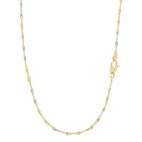 Collana Uomo Oro Giallo Bianco GL100769 Collana da uomo in oro giallo e bianco 750/00 (18 kt). La maglia della collana è a catena tubolare. La lunghezza della collana è di 50 cm. La larghezza della maglia è di 0.20 cm. La chiusura della collana è con moschettone. Il peso della collana è di 4.70 grammi. Referenza: GL100769