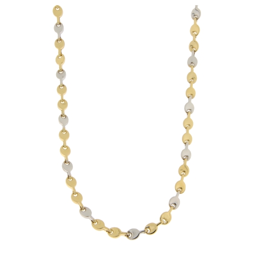 Collana Uomo Oro Giallo Bianco GL101146 Collana da uomo in oro giallo e bianco 750/00 (18 kt). La maglia della collana è a catena tubolare. La lunghezza della collana è di 50 cm. La larghezza della maglia è di 0.35 cm. La chiusura della collana è con moschettone. Il peso della collana è di 9.80 grammi. Referenza: GL101146