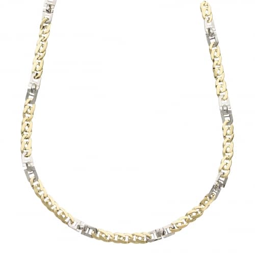 Collana Uomo Oro Giallo Bianco GL101694 Collana da uomo in oro giallo e bianco 750/00 (18 kt). La maglia della collana è a catena piena. La lunghezza della collana è di 50 cm. La larghezza della maglia è di 0.35 cm. La chiusura della collana è con moschettone. Il peso della collana è di 11.20 grammi. Referenza: GL101694