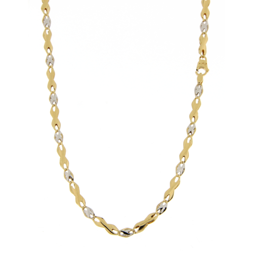 Collana Uomo Oro Giallo Bianco GL101854 Collana da uomo in oro giallo e bianco 750/00 (18 kt). La maglia della collana è a catena modello con riportini. La lunghezza della collana è di 50 cm. La larghezza della maglia è di 0.35 cm. La chiusura della collana è con moschettone. Il peso della collana è di 7.00 grammi. Referenza: GL101854 Elegante e raffinata, questa collana da uomo in oro giallo e bianco 750/00 (18 kt) è l’accessorio perfetto per aggiungere un tocco di lusso discreto al tuo stile. La maglia a catena modello con riportini conferisce alla collana un design unico e dinamico, mentre la combinazione di oro giallo e bianco crea un contrasto sofisticato e moderno. Con una lunghezza di 50 cm e una larghezza di 0.35 cm, questa collana si adatta perfettamente al collo, offrendo un look elegante e confortevole. Il moschettone garantisce una chiusura sicura e pratica. Con un peso di 7.00 grammi, questa collana è abbastanza leggera da essere indossata quotidianamente, ma al tempo stesso offre la solidità e il prestigio che contraddistinguono i gioielli di alta qualità. È ideale da abbinare a un orologio in oro o in acciaio per un look curato e coordinato, oppure da indossare da sola come pezzo forte del tuo outfit. Perfetta per occasioni formali, ma anche per arricchire un look casual con un tocco di eleganza senza tempo. Se cerchi un gioiello versatile e di grande impatto, questa collana in oro bicolore è la scelta ideale, un accessorio che esprime personalità e stile in ogni situazione.