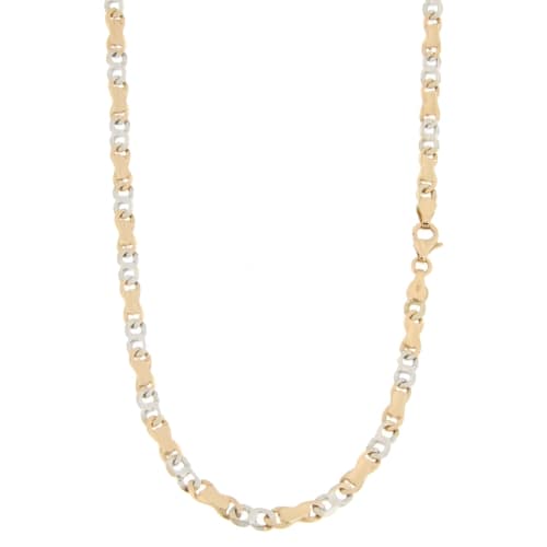 Collana Uomo Oro Rosa Bianco GL100400 Collana da uomo in oro rosa e bianco 750/00 (18 kt). La maglia della collana è a catena piena con lavorazione lucida. La lunghezza della collana è di 50 cm. La larghezza della maglia è di 0,40 cm. La chiusura della collana è con moschettone. Il peso della collana è di 15,50 grammi. Referenza: GL100400