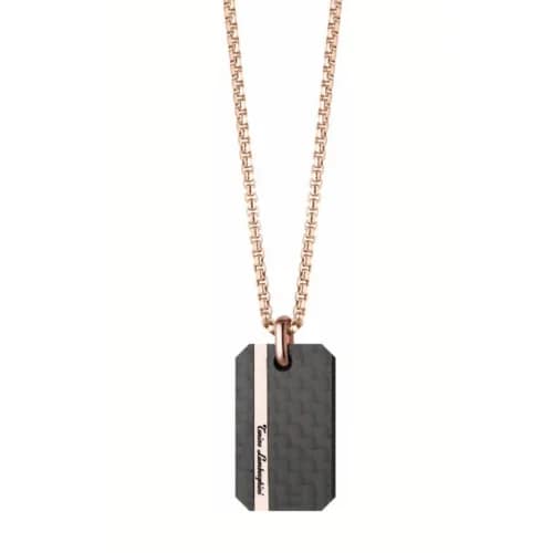 Collana Uomo Tonino Lamborghini TL0027 Collana da uomo Tonino Lamborghini. Collana in acciaio PVD oro rosa con piastrina effetto carbonio, lunghezza 50 cm. Referenza: TL0027 Questa collana da uomo Tonino Lamborghini, esprime forza e carattere in ogni dettaglio. Un gioiello pensato per chi vuole distinguersi con un accessorio dal design deciso e moderno. Articolo spedito con astuccio e garanzia Tonino Lamborghini