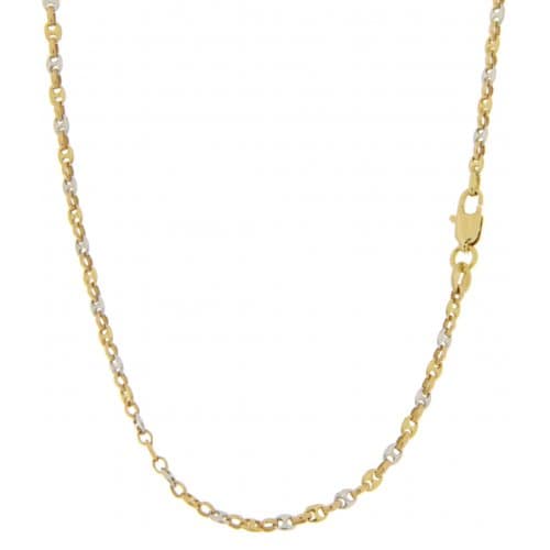 Collana Uomo Unoaerre Oro Giallo Bianco GL100131 Collana Unoaerre da uomo in oro giallo e bianco 750/00 (18 kt). La maglia della collana è a catena modello marina piatta alternata con lavorazione lucida. La lunghezza della collana è di 60 cm. La larghezza della maglia è di 0,20 cm. Il peso della collana è di 7,60 grammi. Referenza: GL100131