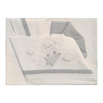 Set lenzuola 3 pezzi in 100% puro cotone per culla o carrozzina composto da:1 lenzuolo sopra,1 federa, 1 lenzuolo sotto con angoli elasticizzati adatto per materasso misure 34×72 cm.Rifinito con stampe ricamate e confezionato in una scatola di cartone rigida, perfetto come idea regalo.Disponibile nei colori rosa, cielo o neutri.NB: Il disegno ricamato e lo stile del bordino possono cambiare a seconda della disponibilità del momento.