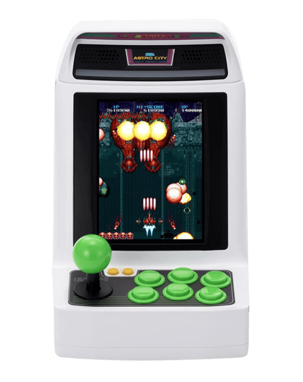 Tutto quello che c’è da sapere su SEGA ASTRO CITY MINI V! La mini console Astro City è una fedele riproduzione in scala 1/6 della console arcade originale. Quando è stata rilasciata nel 1993, era disponibile come console in resina. Come la sorella maggiore, anche Astro City Mini è realizzata in resina e presenta lo stesso design rigoroso dell’originale. Con uno schermo LCD verticale di 4,6 pollici – più grande di quello della sorella minore – questa edizione V è ora disponibile per godersi alcune leggendarie sessioni di Vertical Shoot ‘Em Up & Action Arcade! Astro City Mini V contiene 22 classici giochi arcade Sega preinstallati, azione e sparatutto verticali a volontà, tra cui alcune delle leggende delle fumose sale giochi degli anni ’80 e ’90: Terra Cresta, Tatsujin, Raiden, Sonic Wings, Gunbirds, Strikers 45 e il venerabile Zaxxon! Tutti gli accessori di Astro City già disponibili sono ovviamente compatibili con questo Mini V, con l’Arcade Stick e l’Astro Pad, che potete scoprire anche nel nostro negozio. Che siate nostalgici delle sale giochi, appassionati di giochi Sega o semplicemente desiderosi di scoprire nuove cose, Sega Astro City Mini vi farà vivere l’emozione dei grandi giochi arcade nel palmo della vostra mano! Caratteristiche della console Sega Astro City Mini: Dimensioni: 13*17,5*17cm Schermo: 4,6? Risoluzione dello schermo LCD: 698×930 Colori dello schermo LCD: 16,7M Risoluzione compatibile con HDMI: 720P/480P Console inclusa Cavo di ricarica USB (adattatore di rete non incluso) Cavo HDMI Manuale di istruzioni EFIGS Edizione Europea Elenco giochi: – Action Fighter – Aero Fighters (Sonic Wings) – Armed Police Batrider* – BATSUGUN – Battle Bakraid Unlimited Version – Cosmo Police Galivan – Desert Breaker – Dogyuun – Fire Shark (Same! Same! Same! Same!) – Grind! Stesso! Stesso!) – Grind Stormer (V・V) – Gunbird – Moon Cresta – Out Zone – Raiden – Samurai Aces (Sengoku Ace) – Sorcer Striker (Mahou Daisakusen) – Strikers 1945 – TATSUJIN – Terra Cresta – Truxton II (TATSUJIN OH)* – Wrestling War – ZAXXON ©SEGATOYS – Prodotto nuovo
