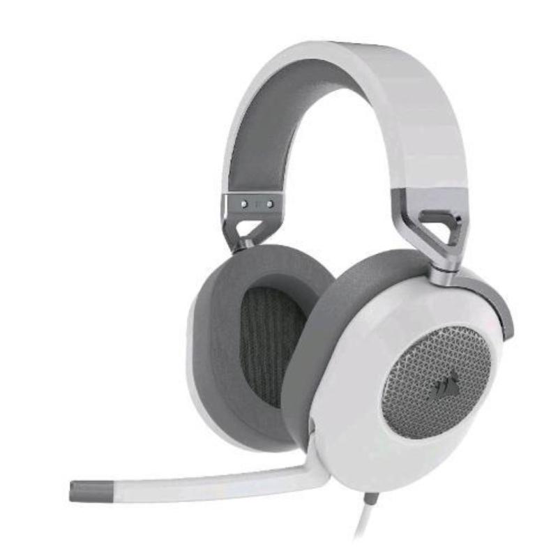 Corsair hs65 surround cuffiagaming con microfono omnidirezionale audio dolby surround 7.1 tecnologia sonarworks soundid controllo del volume su padiglione jack 3.5 compatibile pc xbox ps4 mobile bianco grigio