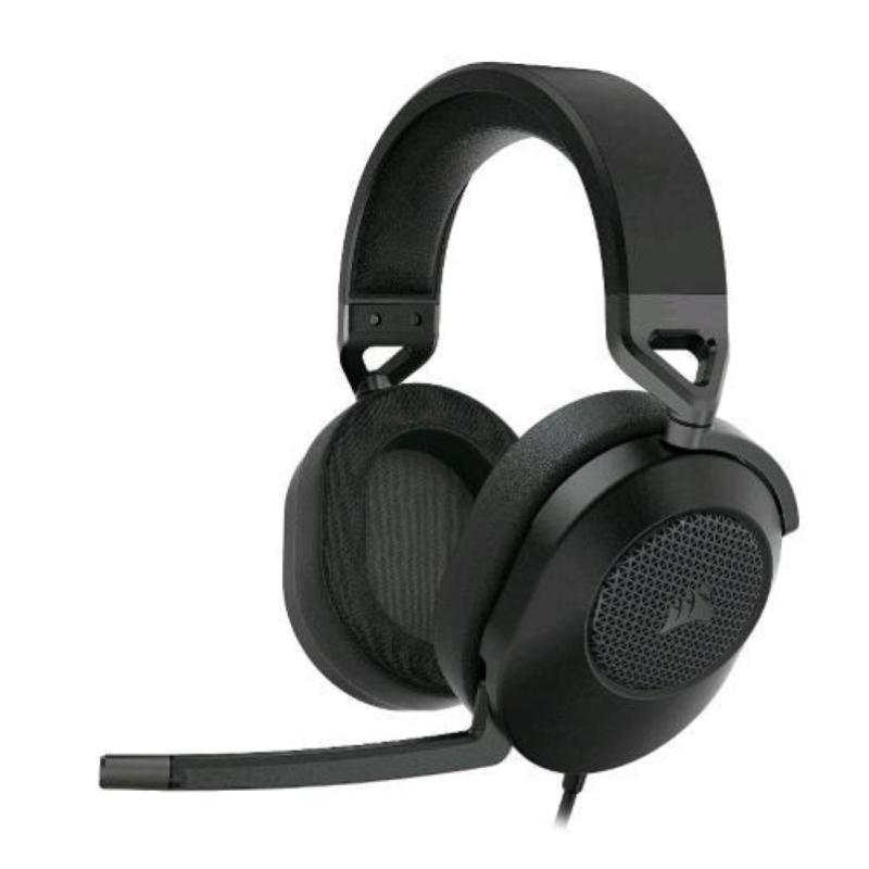Corsair hs65 surround cuffiagaming con microfono omnidirezionale audio dolby surround 7.1 tecnologia sonarworks soundid controllo del volume su padiglione jack 3.5 compatibile pc xbox ps4 mobile carbon