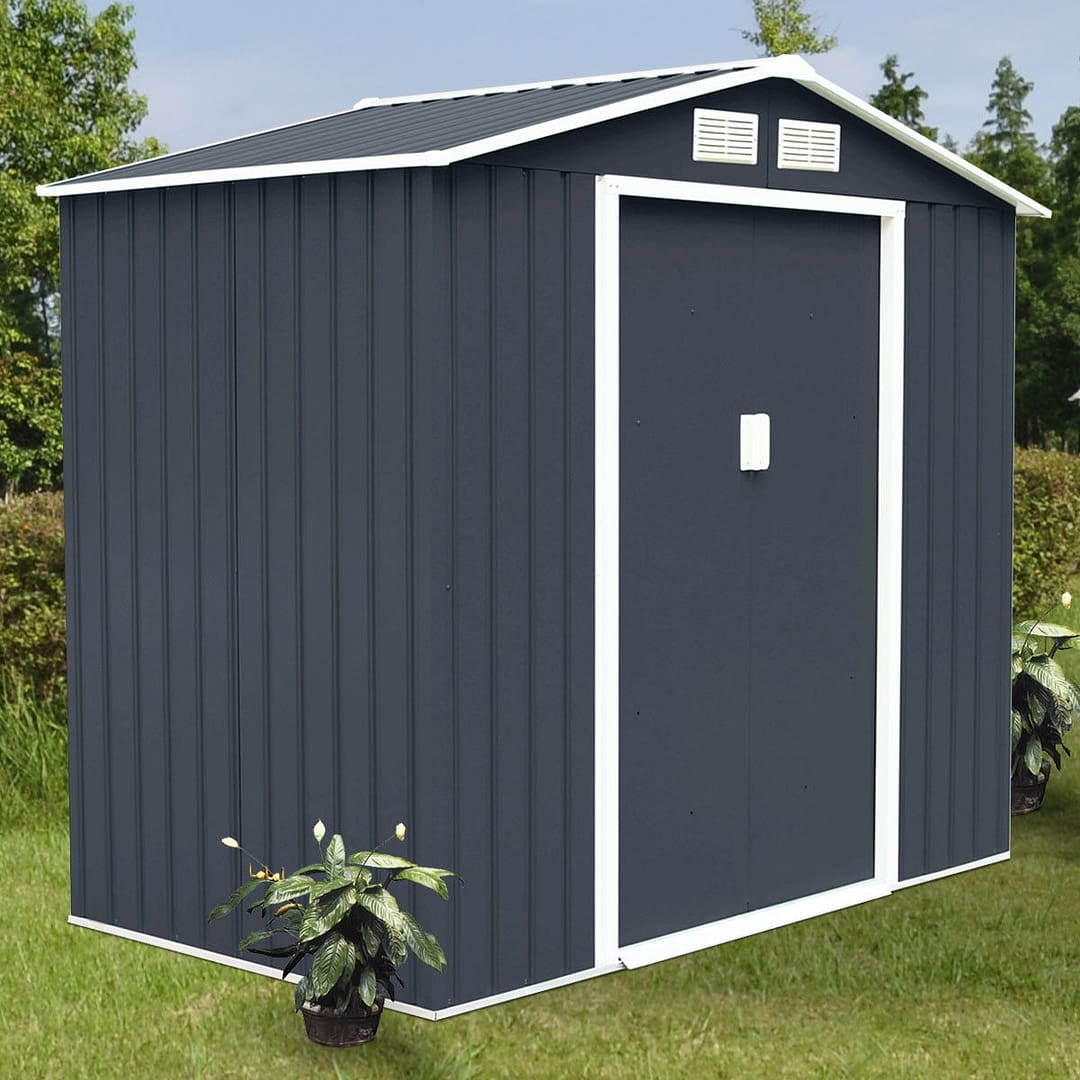 Costway Box Casetta da giardino per gli attrezzi 213x127x185cm in lamiera d’acciaio Grigio