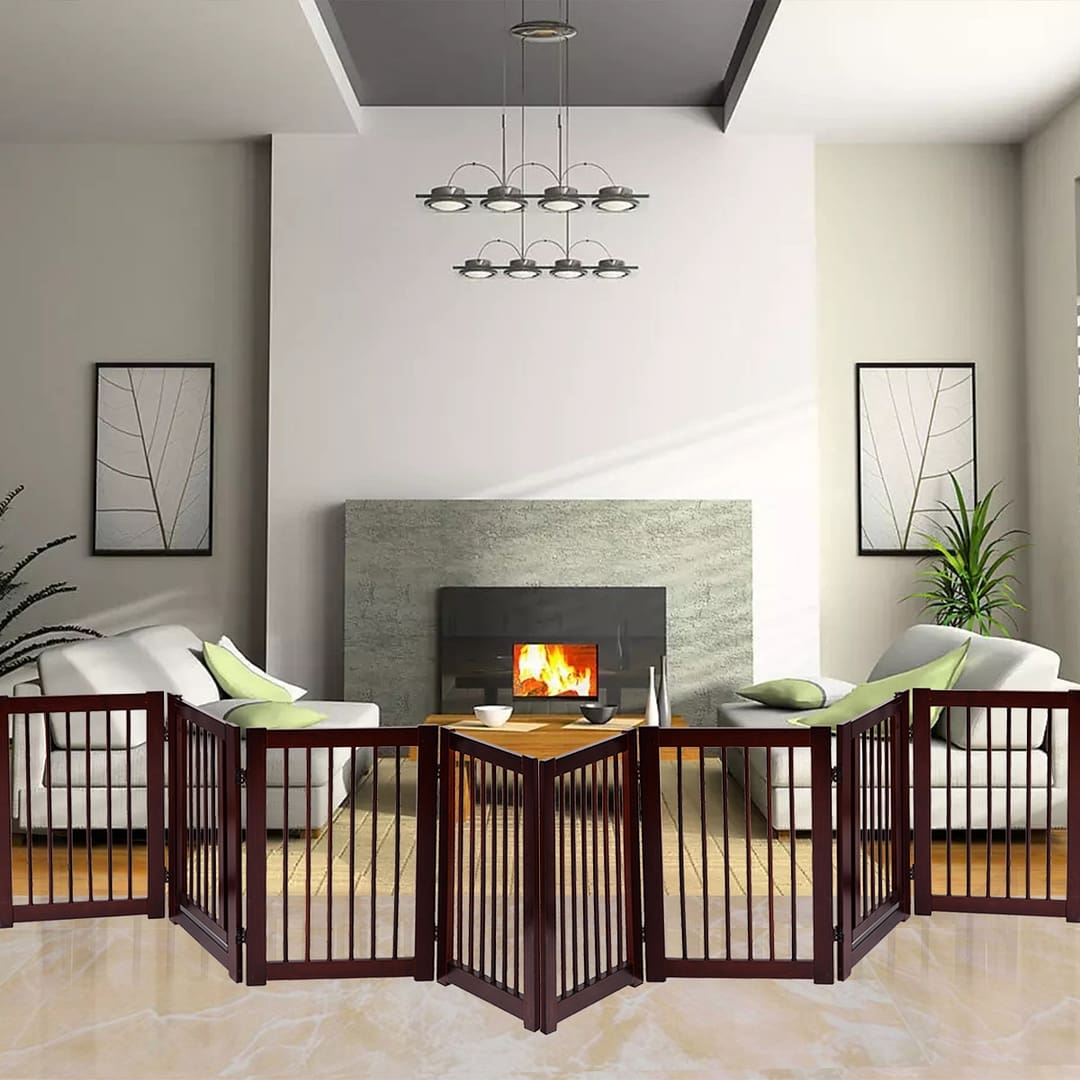 Costway Cancello per cani pieghevole 4 pezzi Cancelletto di sicurezza per animali domestici 203x76x1,8cm Marrone