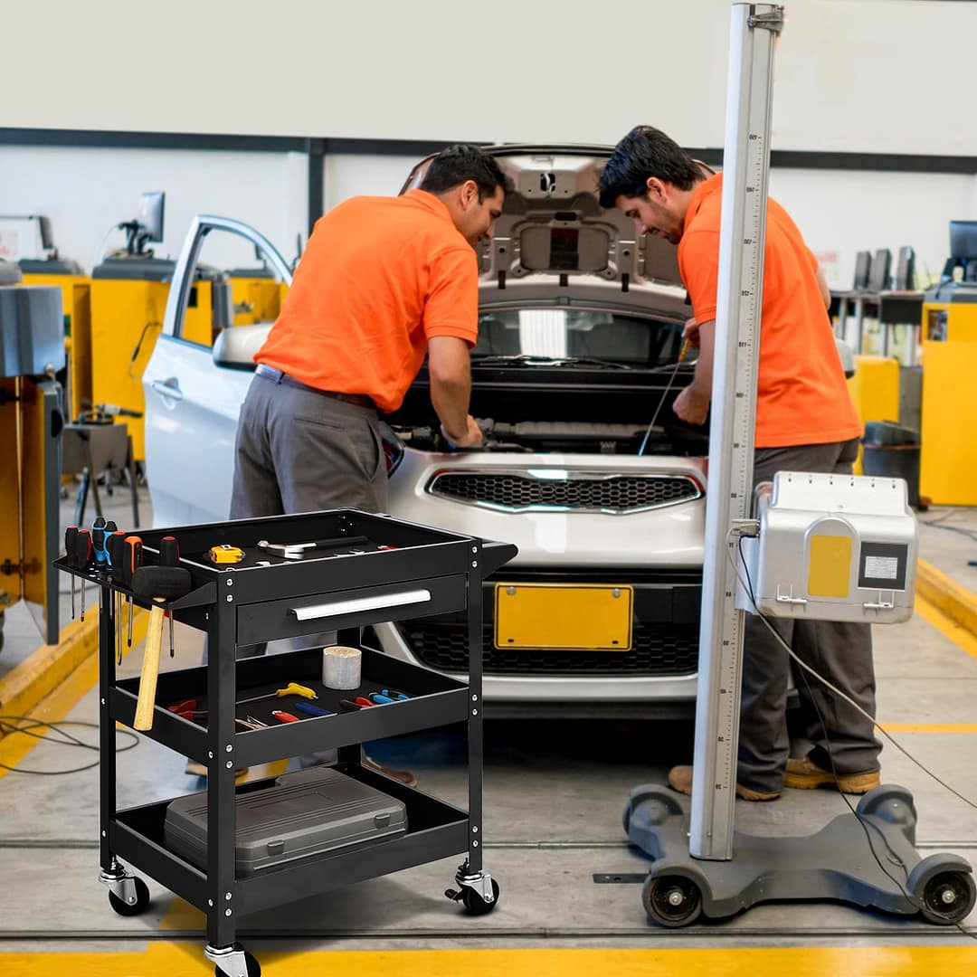 Costway Carrello portautensili meccanico girevole con cassetto degli attrezzi da officina 80x41x79,5cm Nero