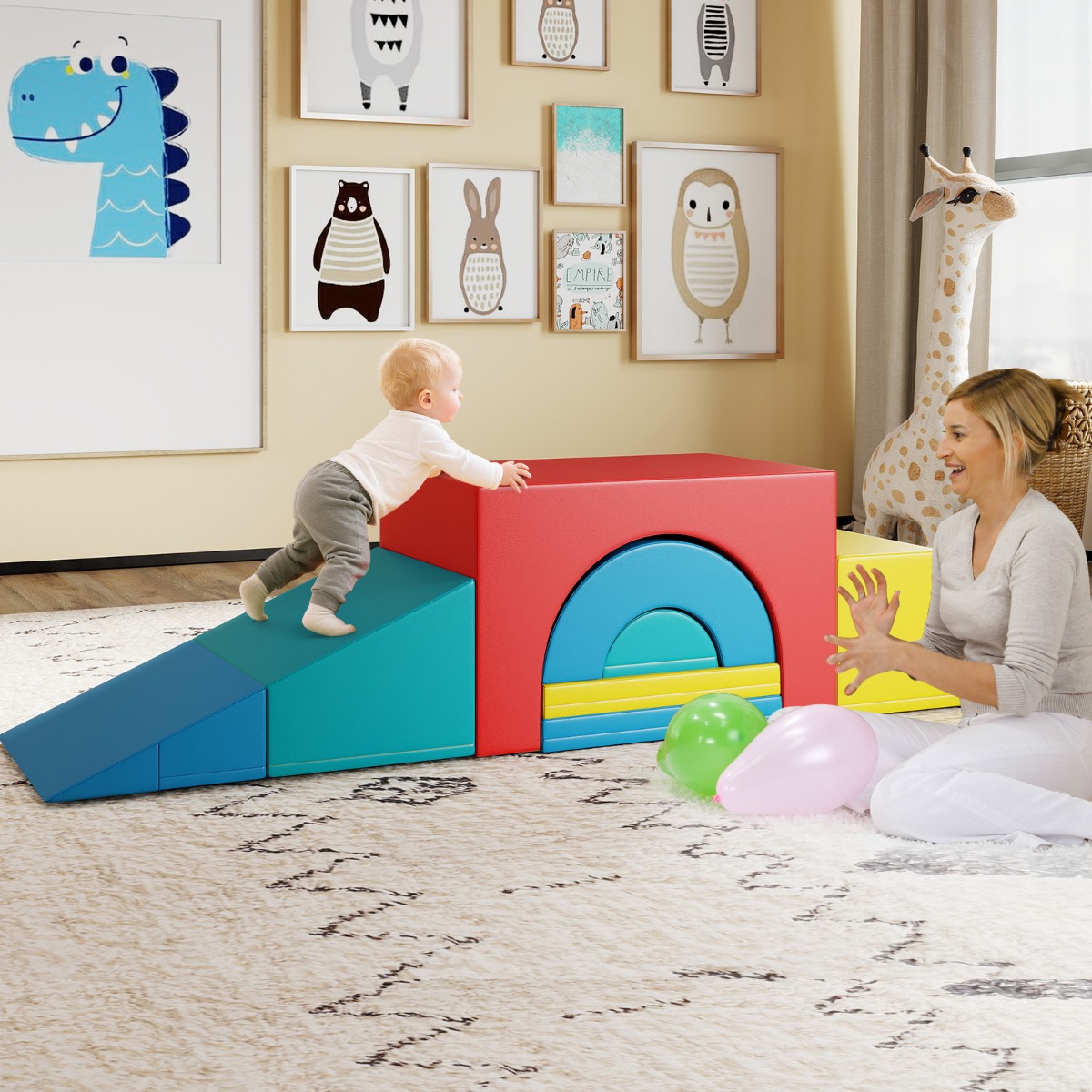Costway Palestra morbida in PU strutture leggere per bambini per arrampicarsi, Set di 7 blocchi da arrampicata in schiuma da 1 anno in su Colorato 1