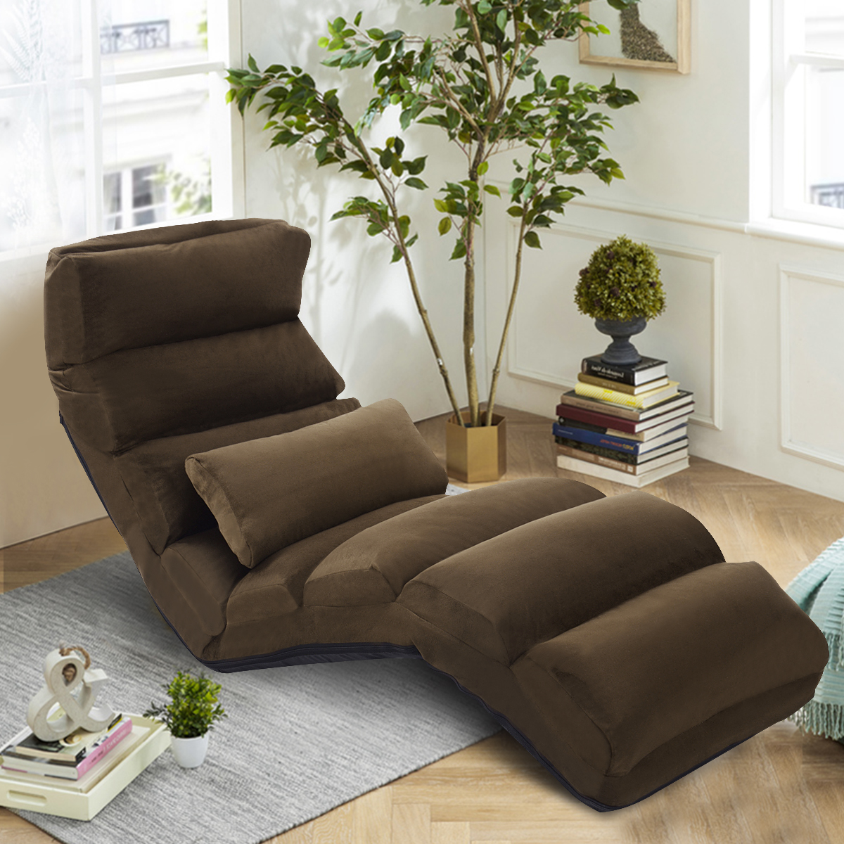 Costway Poltrona pieghevole da terra rivestito in finto camoscio, Divano imbottito regolabile in 5 posizioni Marrone