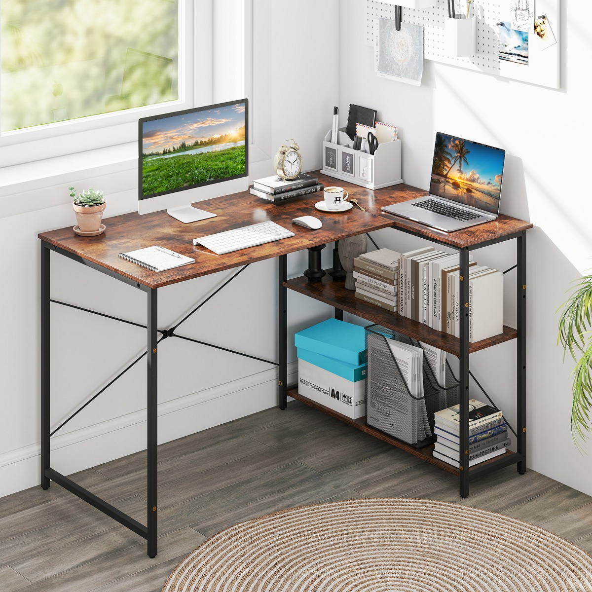Costway Scrivania angolare a forma di L con ripiano regolabile, Tavolo da studio salvaspazio per ufficio in casa Marrone