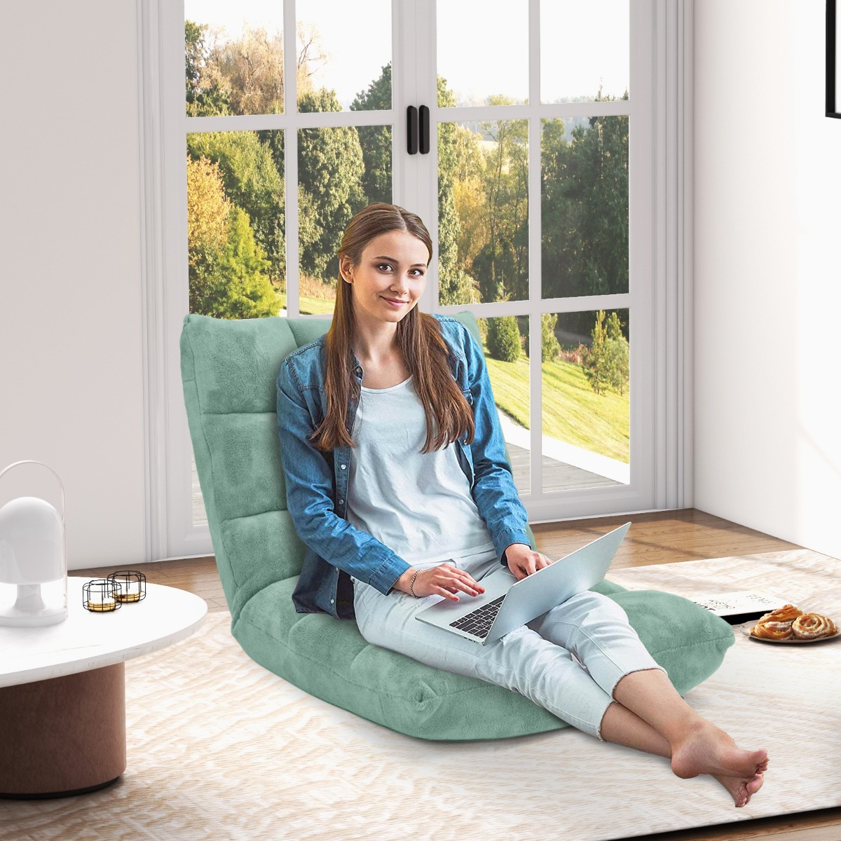 Costway Sedia imbottita da pavimento regolabile in 14 posizioni 105x56x15cm Verde chiaro