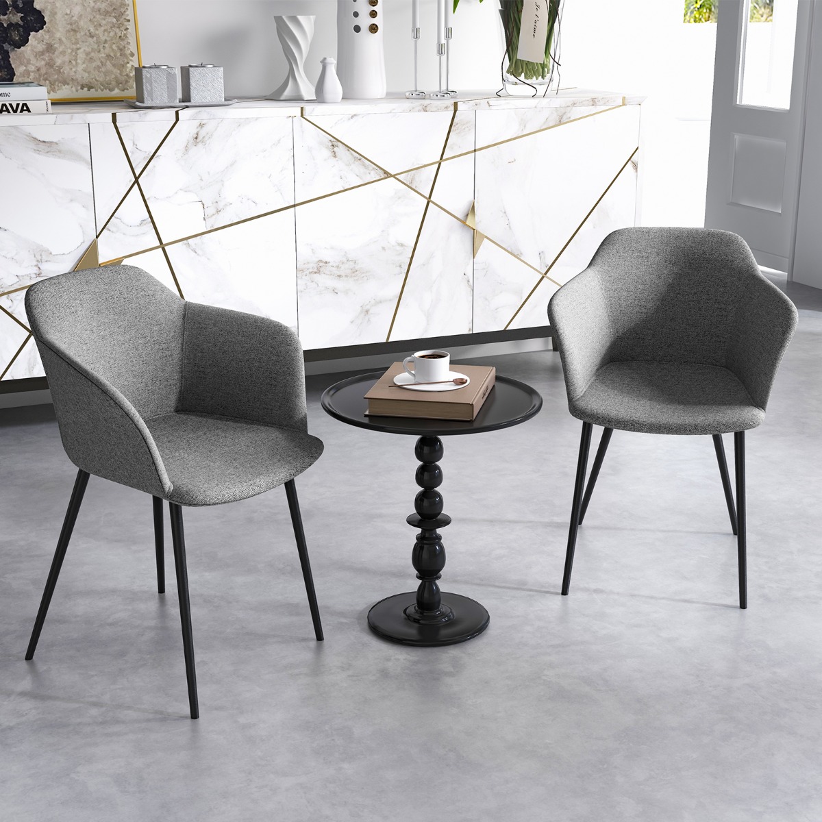 Progettata con una chic combinazione di superficie del sedile in lino e gambe in metallo nero, aggiunge senza sforzo un tocco di eleganza a qualsiasi stanza. Che sia in sala da pranzo, soggiorno o camera da letto, questa sedia versatile impressionerà i tu
