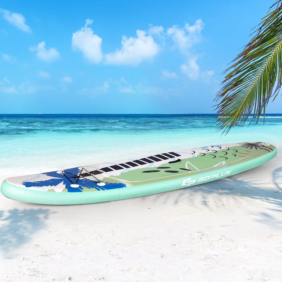 Costway Tavola da paddle gonfiabile con pagaia regolabile, Tavola da surf portatile per pesca e yoga 335x76x16cm Verde