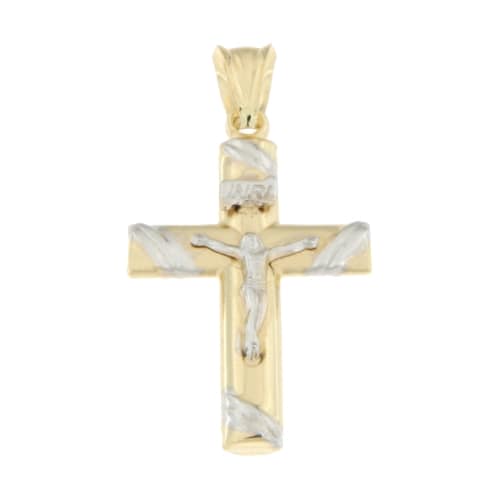 Croce Uomo Oro Giallo Bianco GL100539 Ciondolo croce da uomo in oro giallo e bianco 750/00 (18kt). Le dimensioni della croce sono di 3,50 x 2,00 cm. Il peso della croce è di 2,10 grammi. Referenza: GL100539