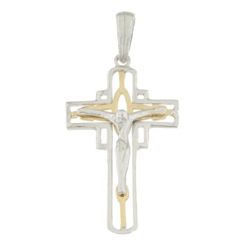 Croce Uomo Oro Giallo e Bianco GL100493 Ciondolo croce da uomo in oro giallo e bianco 750/00 (18kt). Le dimensioni della croce sono di 4,20 x 2,00 cm. Il peso della croce è di 3,30 grammi. Referenza: GL100493