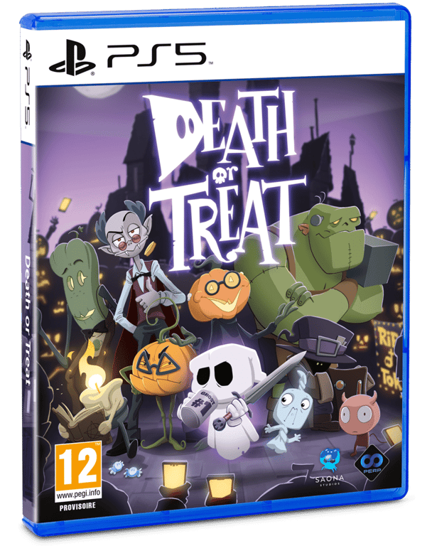 Scoprite Death or Treat su PS5! Vesti i panni di Scary, il proprietario di Ghost Mart, un’azienda leader nella produzione di dolciumi per Halloween. Scoprite mondi immensi, esplorate nuove mappe e cercate di sopravvivere alle orde di nemici. Non è un compito facile, ogni mondo è ancora più difficile dell’altro. A partire da Darkchat, Riptok, Deviltube e infine FaceBoo! l’ultima epica frontiera. PUBLISHER Perp Games DEVELOPER Saona Studios GENERE Hack ‘n’ Slash, roguelike-action 2D SUPPORTO Videogioco su disco PLAYSTATION PlayStation 5 LINGUE Inglese, francese, tedesco, spagnolo, italiano GRADO DI ETÀ PEGI 12 &#9679 Scegliete lo stile di combattimento e le armi che preferite (veloci, pesanti o a distanza) e affrontate una vera e propria orda di nemici in vero stile hack ‘n’ slash. &#9679 Vola in aria e attacca la folla con forza, muoviti con agilità e cerca i punti deboli dei tuoi avversari. Raccogliete preziosi tesori nascosti per sbloccare nuove terrificanti armi e spaventose abilità che vi aiuteranno nel vostro viaggio. &#9679 Incontra gli spaventosi ma amichevoli vicini di HallowTown. &#9679 Un intero mondo dipinto a mano da esplorare. – Prodotto nuovo