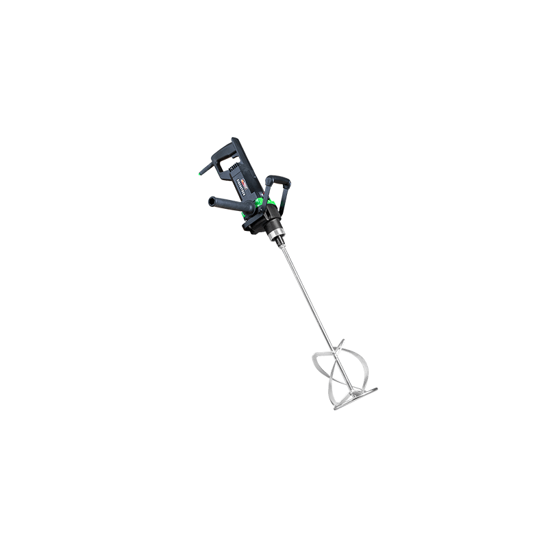 Potente motore da 2000 W Comodo per il trasporto, riduzione delle vibrazioni, antiscivolo, facile da posare, arco in metallo salvaspazio con impugnatura morbida Impugnatura laterale (utilizzabile su entrambi i lati, gestione sicura durante la miscelazione di materiale ad alta viscosità) Interruttore elettronico: regolazione continua della velocità per ridurre gli schizzi Facile da riparare: cambio facile delle spazzole di carbone Attacco della frusta diretto M14: trasmissione della potenza ottimale, elevata concentricità Fino a 80 kg
