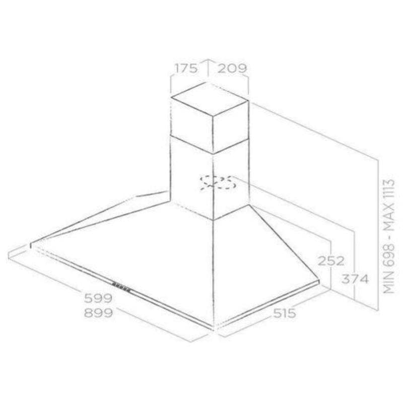 Elica tamaya nw lux ix-f-60 cappa a camino acciaio 60 cm.