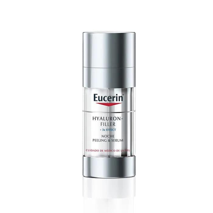 Sier di peeling e novità di Hyaluron-Filler di Eucerin, un innovativo trattamento a doppia efficacia. Il siero notturno con potenza esfoliante, leviga la consistenza della pelle e riempie le rughe. Di conseguenza, la pelle radiante e i pori riducono il loro aspetto. Combina due potenti formule per ringiovanire: il rinnovamento delle cellule con un complesso esfoliante AHA e saponina di glicina e filler rughe e idratazione, con acido ialuronico a basso e alto peso molecolare per trattare le rughe in diversi strati della pelle.