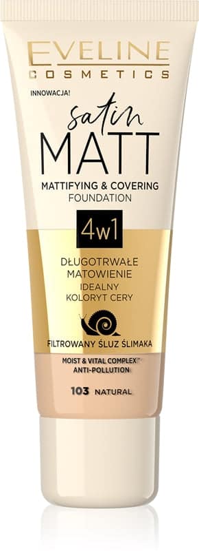 Eveline Cosmetics Satin Matt fondotinta opacizzante con estratto di bava di lumaca colore 103 Natural 30 ml