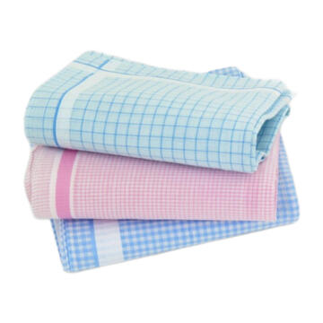 Fazzoletti di cotone da donna a quadretti con righe di raso in tre diverse fantasie e colori pastello, tinto in filo e con orlo a macchina.Misura: 38×38 cm.Disegni assortiti nella scatola (da 12 pezzi).