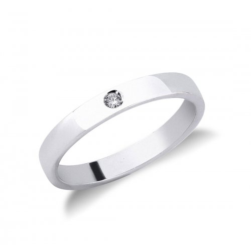 Fede Nuziale modello Classica in oro bianco 18 kt (750/00), peso 3 grammi, con 1 diamante incastonato da 0,03 carati di colore G, Larghezza della fascia 3 mm. Referenza: FSD010BB L’incisione delle fedi è gratuita, articolo spedito con garanzia ed astuccio della nostra gioielleria.