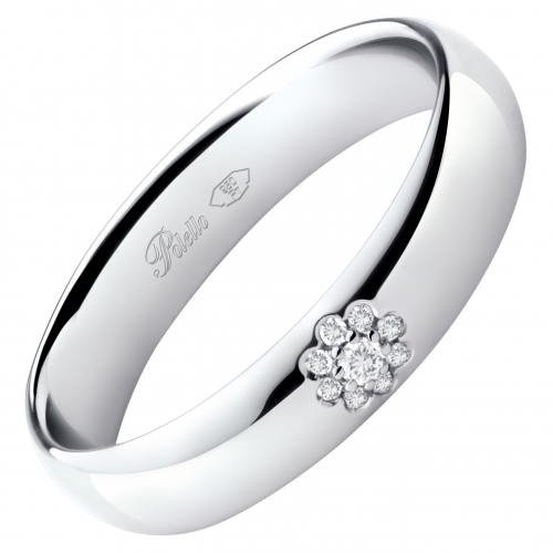 Fede Nuziale Polello Collezione Regina Di Fiori 3183DPT Fede nuziale Polello della collezione Regina Di Fiori. Fede nuziale realizzata in platino 950/00. Fede nuziale con diamanti natural di 0.06 carati incastonati a forma di fiore. La larghezza della fascia è di 4.20 mm. Referenza: 3183DPT Articolo spedito con astuccio originale e garanzia Polello Polello, una storia d’amore dal 1976. Oltre 40 anni d’amore per le proprie creazioni: le fedi Polello sono realizzate da sapienti mani artigiane, mosse da passione e professionalità, da tradizione e innovazione, da arte e mestiere. Garanzia di qualità per il vostro matrimonio. Della stessa collezione Polello Regina Di Fiori questa fede si abbina con:
