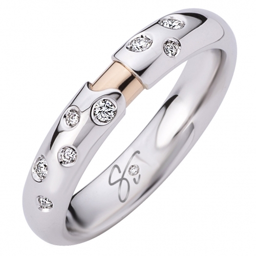 Fede Nuziale Polello Collezione Si, Lo Voglio 3273DBR Fede nuziale Polello della collezione Si, Lo Voglio. Fede nuziale realizzata in oro bianco e rosa 18kt (750/00). Fede nuziale con 9 diamanti naturali di 0.08 carati. La larghezza della fascia è di 3.80 mm. Referenza: 3273DBR Articolo spedito con astuccio originale e garanzia Polello Polello, una storia d’amore dal 1976. Oltre 40 anni d’amore per le proprie creazioni: le fedi Polello sono realizzate da sapienti mani artigiane, mosse da passione e professionalità, da tradizione e innovazione, da arte e mestiere. Garanzia di qualità per il vostro matrimonio. Della stessa collezione Polello Si, Lo Voglio questa fede si abbina con: