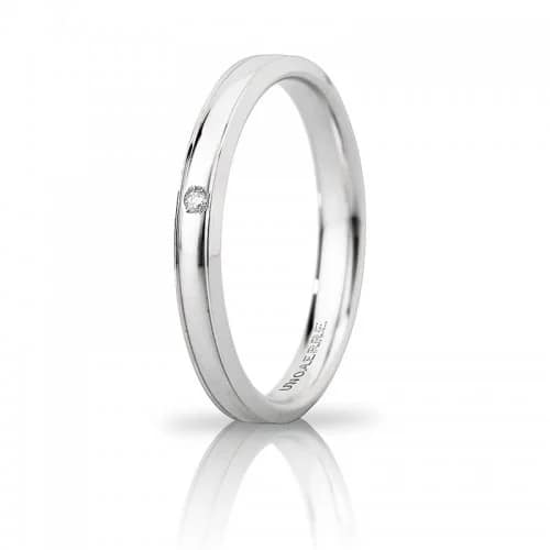 Fede Nuziale Unoaerre Orion slim con diamante Oro bianco Brillanti Promesse