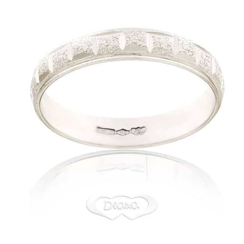 Fedina Diana Oro Bianco 18 KT FD285L3 OB Fedina fidanzamento Diana in oro bianco 750/00 (18 KT). Fedina con lavorazione diamantata, spessore 0.40 cm, peso 2.80 grammi. Referenza: FD285L3 OB