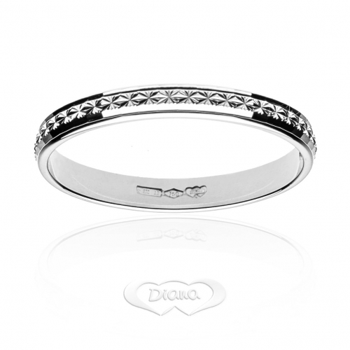 Fedina Diana Oro Bianco 18 KT FD73 L2 OB Fedina fidanzamento Diana in oro bianco 750/00 (18 KT). Fedina con lavorazione sfaccettata, spessore 0.25 cm, peso 1.80 grammi. Referenza: FD73 L2 OB