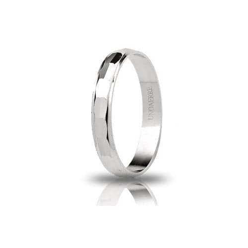 Fedina Unoaerre in oro bianco 18 kt Viola AF296 Fedina da fidanzamento Unoaerre della collezione Viola in oro bianco 750/00 (18kt). La larghezza della fedina è di 3,00 mm, il peso è di di 1,60 grammi. Referenza: AF296 Le fedine nascono come promessa del matrimonio, quindi la loro funzione è prevalentamente da fidanzamento; ma possono essere acquistate per anniversario o qualsivoglia ricorrenza. L’incisione delle fedine è gratis! Da comunicare prima di aggiungere il prodotto al carrello puoi scegliere tu cosa incidere, simboli, numeri, o altro, possiamo incidere qualsiasi cosa. Se hai bisogno di una guida alle misure, la puoi trovare qui: Guida misure anelli In ogni caso, acquista con tranquillità, qualora le misure dovessero risultare errate, puoi restituire gli articoli ed effettueremo il cambio.
