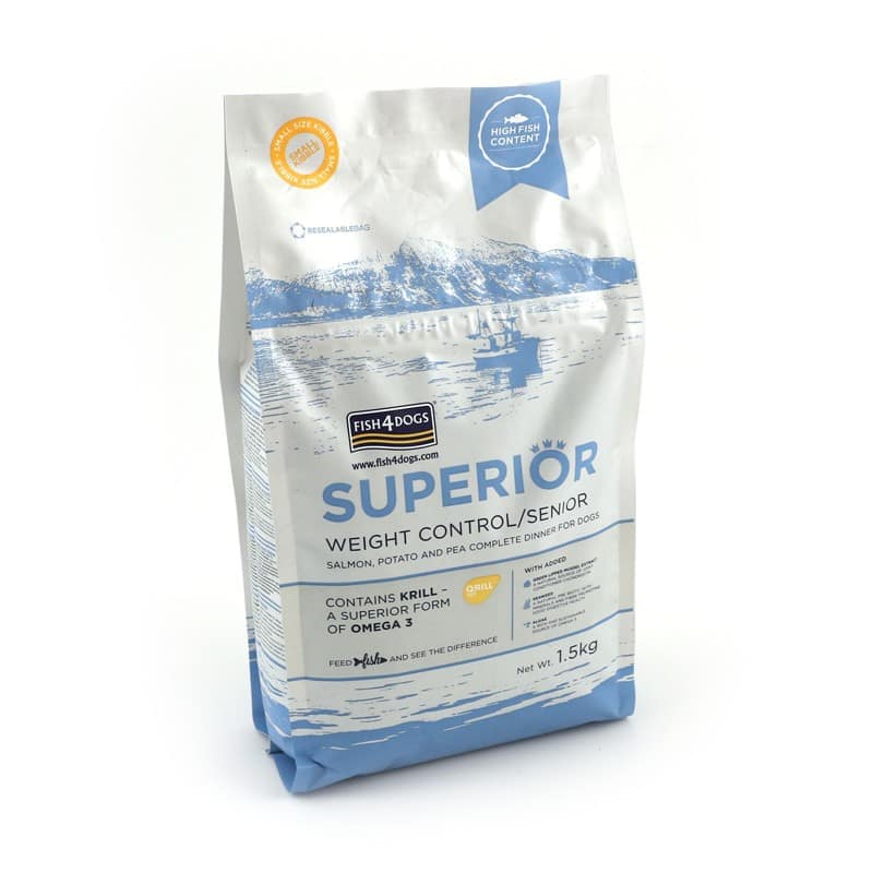 Le crocchette per cani Fish4Dogs Senior Superior Weight Control Regular sono le migliori crocchette per cani assolutamente naturali e prodotte in Inghilterra esclusivamente a base di pesce proveniente dall’industria alimentare umana. Particolarmente indicate per cani obesi o grassi che conducono uno stile di vita sedentario e necessitano di un’alimentazione ipocalorica e bilanciata. La semplicità e la naturalità della formula, assolutamente priva di prodotti chimici, è ideale per cani sensibili ad allergie ed intolleranze anche gravi.