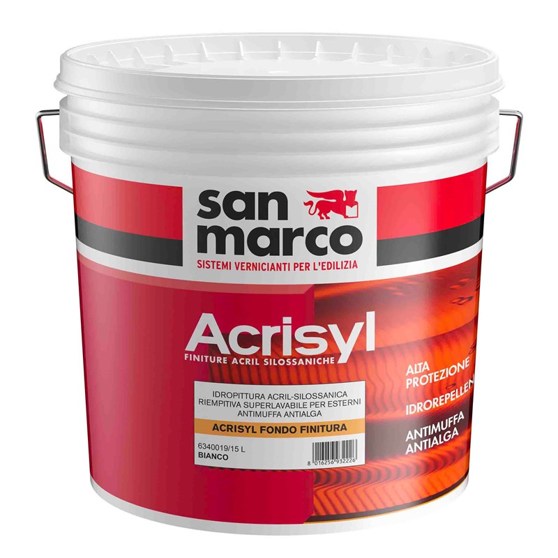 Fondo finitura riempitiva uniformante San Marco Acrisyl per esterno (Secchio 15 Litri)