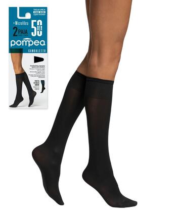 Gambaletto donna coprente 50 den elasticizzato in microfibra con polsino soft e punte nude.Confezione da 2 paia.Disponibile in taglia unica nei colori Manila (pelle) e Nero