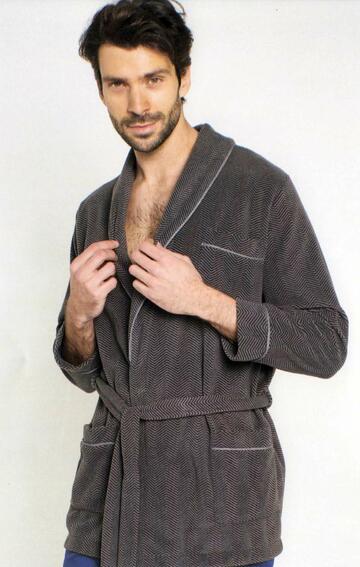 Giacca uomo da camera incrociata con tasche in morbido e caldo PILE con motivo spinato.MADE IN ITALYTaglie: 48/M – 50/L – 52/XL – 54/XXL – 56/XXXL