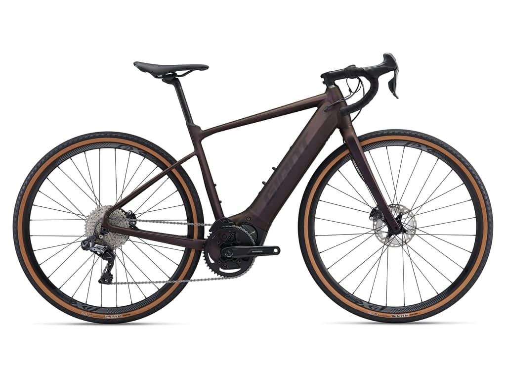 Giant Revolt E+. Capacità della batteria: 500 Wh. Peso (batteria inclusa): 17,8 kg. Materiale del telaio: Alluminio, Deragliatore posteriore: Shimano GRX Di2 RX817, Leve del cambio: Shimano GRX Di2 ST-RX815 – Prodotto nuovo