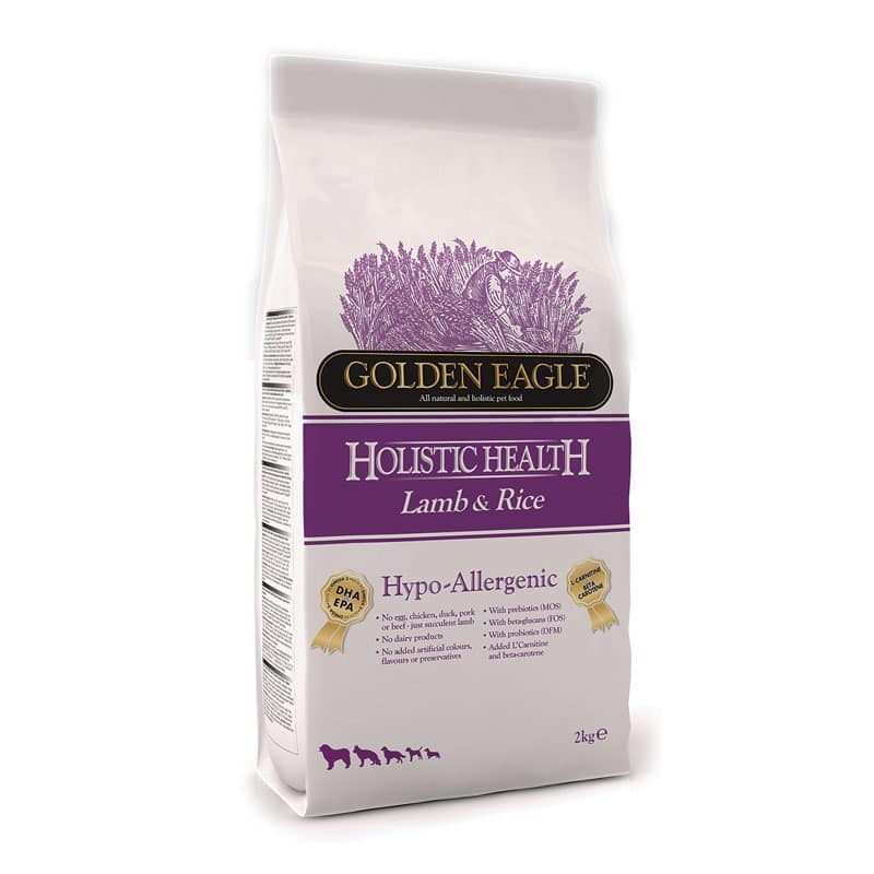 Golden Eagle Sensitive Holistic Lamb & Rice sono le migliori crocchette monoproteiche per cani e ipoallergeniche composte da ingredienti freschi e sani, adatti al consumo umano e naturalmente privi di conservanti, coloranti o additivi chimici.