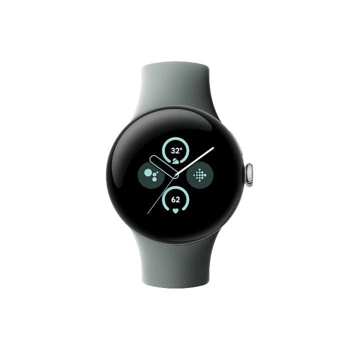 Google Pixel Watch 2. Tecnologia del display: AMOLED, Touchscreen. Capacità RAM: 2000 MB, Memoria flash: 32 GB. Wifi. GPS (satellite). Capacità della batteria: 306 mAh. Peso: 31 g. Materiale della fascia: Fluoroelastomero, Colore della fascia: Verde, Grigio, Taglia della fascia: S/L. Sistema operativo installato: Wear OS – Prodotto nuovo