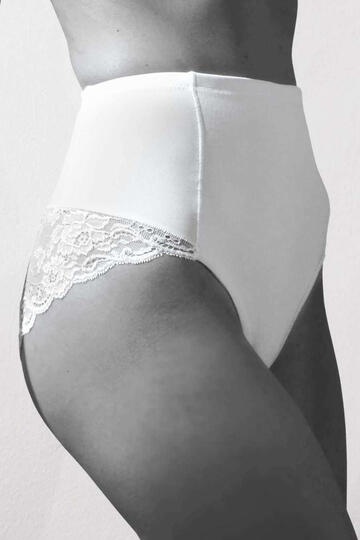 Guaina contenitiva grazie al pannello centrale foderato in cotone. Stile sensuale per la balza di fine pizzo Textronic inserita nel dietro per valorizzare le curve.Made in ItalyColore: Bianco – Champagne – NeroTaglie: 2/S – 3/M – 4/L – 5/XL – 6/XXL – 7/XXXL