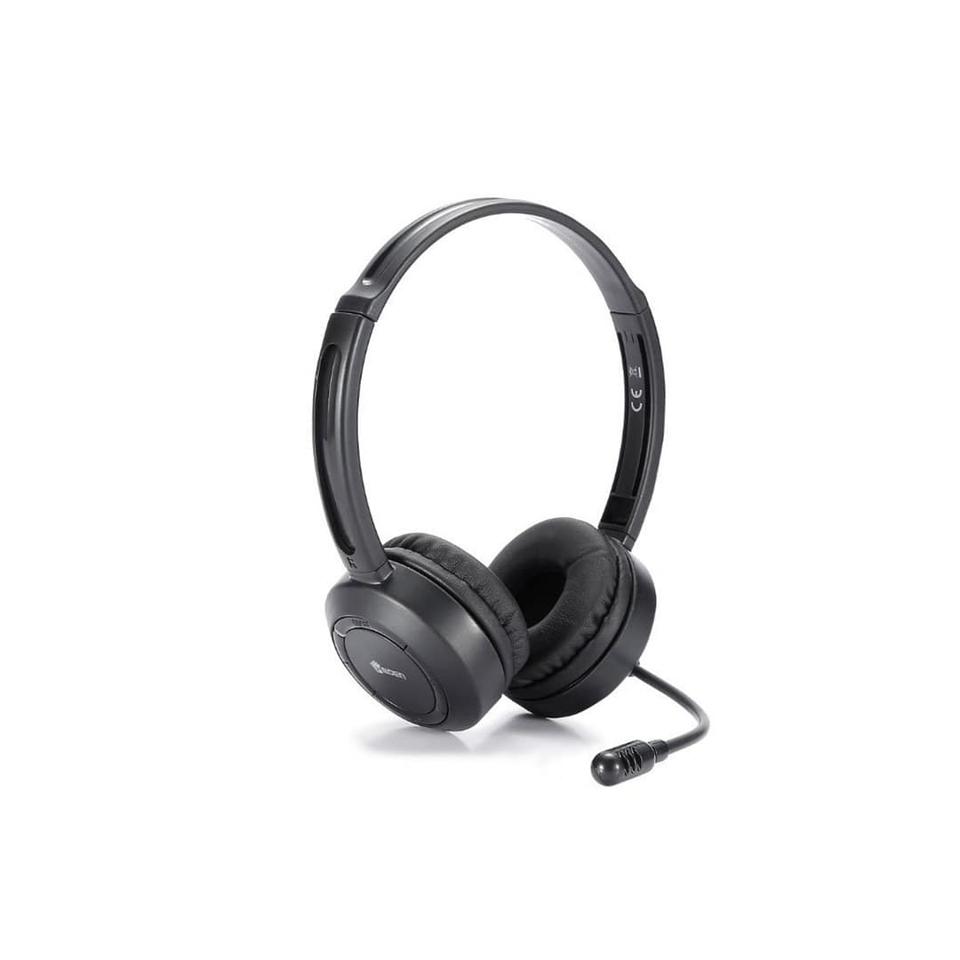 HEDEN Auricolare Bluetooth, connessione BT o microfono girevole con jack da 3,5, archetto regolabile, nero – Prodotto nuovo
