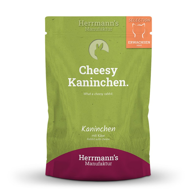 Herrmann’s Selection Coniglio e Formaggio è un alimento umido di alta qualità per gatti, realizzato con il 90,5% di coniglio biologico, che include carne, cuore e fegato, fornendo proteine e vitamina A. Il formaggio grattugiato aggiunge un gusto delizioso e ulteriori proteine, mentre le scaglie di cocco forniscono fibre e acidi grassi saturi per la salute intestinale. Il menu è integrato con lievito di birra per le vitamine del gruppo B, olio di semi di girasole per la vitamina E e lime algale per il calcio. Privo di cereali e glutine, è ideale per gatti con allergie. Prodotto in Germania…