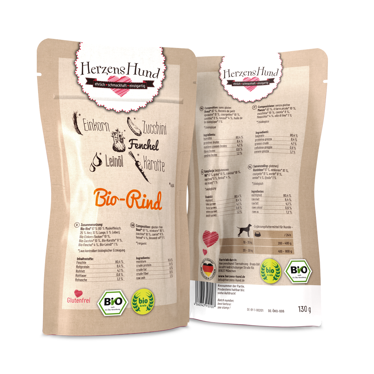 Herzens Hund Manzo Biologico con Verdure Bio Umido per Cani – 130 g