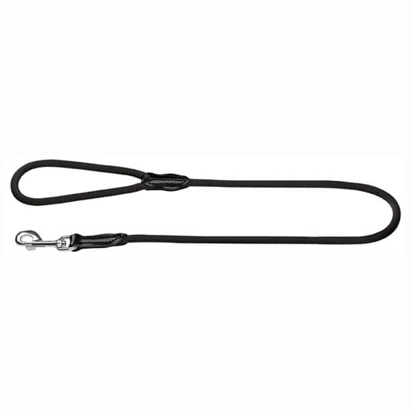 Guinzaglio tubolare color nero in corda per cani. Particolarmente resistente, in morbido poliammide-nylon con anima in poliammide.